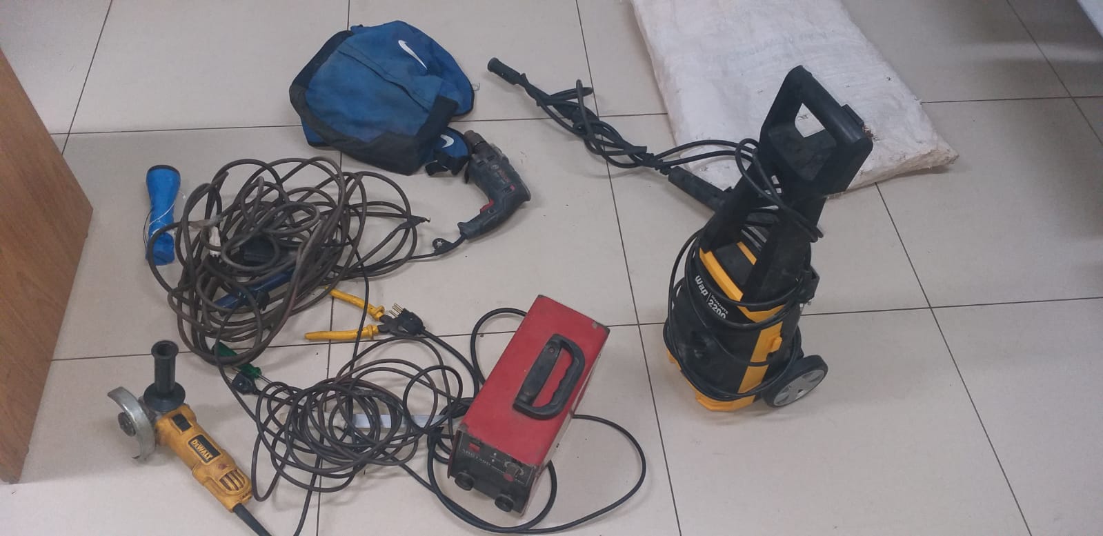 Os agentes notaram um indivíduo carregando um saco que continha diversos objetos em seu interior e decidiram averiguar a situação. Ao ser confrontado, o suspeito admitiu prontamente que havia furtado os objetos de uma serralheria próxima.
