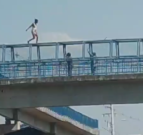 Após populares avistarem a mulher andando por cima da grade de proteção da passarela, acionaram a polícia. A equipe dos cabos, Alexandre e Marques, chegaram primeiro ao local e conversaram com a mulher até a chegada da equipe do corpo de Bombeiros. Guardas municipais também deram apoio na ocorrência.