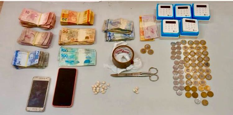 Na busca, encontraram 16 porções de crack, além de uma quantia em dinheiro no valor de $2.824,00, juntamente com objetos utilizados no tráfico de drogas. Conduziram todas as partes ao Distrito Policial, onde autuaram o usuário por porte de entorpecentes e o liberaram.
