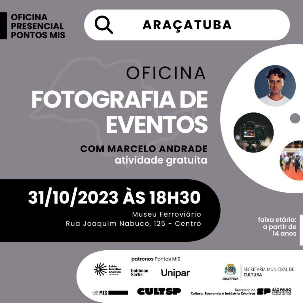 Na próxima terça-feira, 31 de outubro, o Museu Ferroviário de Araçatuba se tornará o cenário para uma oficina dedicada à “Fotografia de Eventos”. Essa iniciativa é fruto de uma parceria entre a Prefeitura de Araçatuba, por meio da Secretaria Municipal de Cultura, e o programa Pontos MIS.