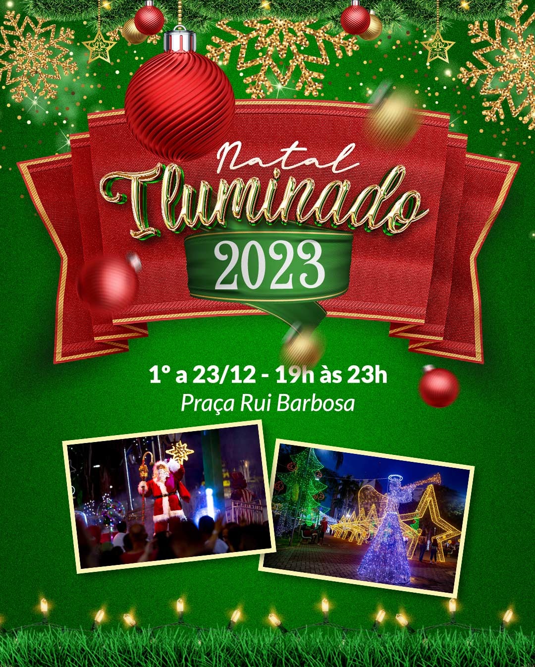 No dia 1º de dezembro, às 20h, será o lançamento oficial do Natal Iluminado, com apresentação musical do Animania, chegada do Papai Noel e Carretão da Alegria, além da decoração natalina na praça e rotatórias da cidade.