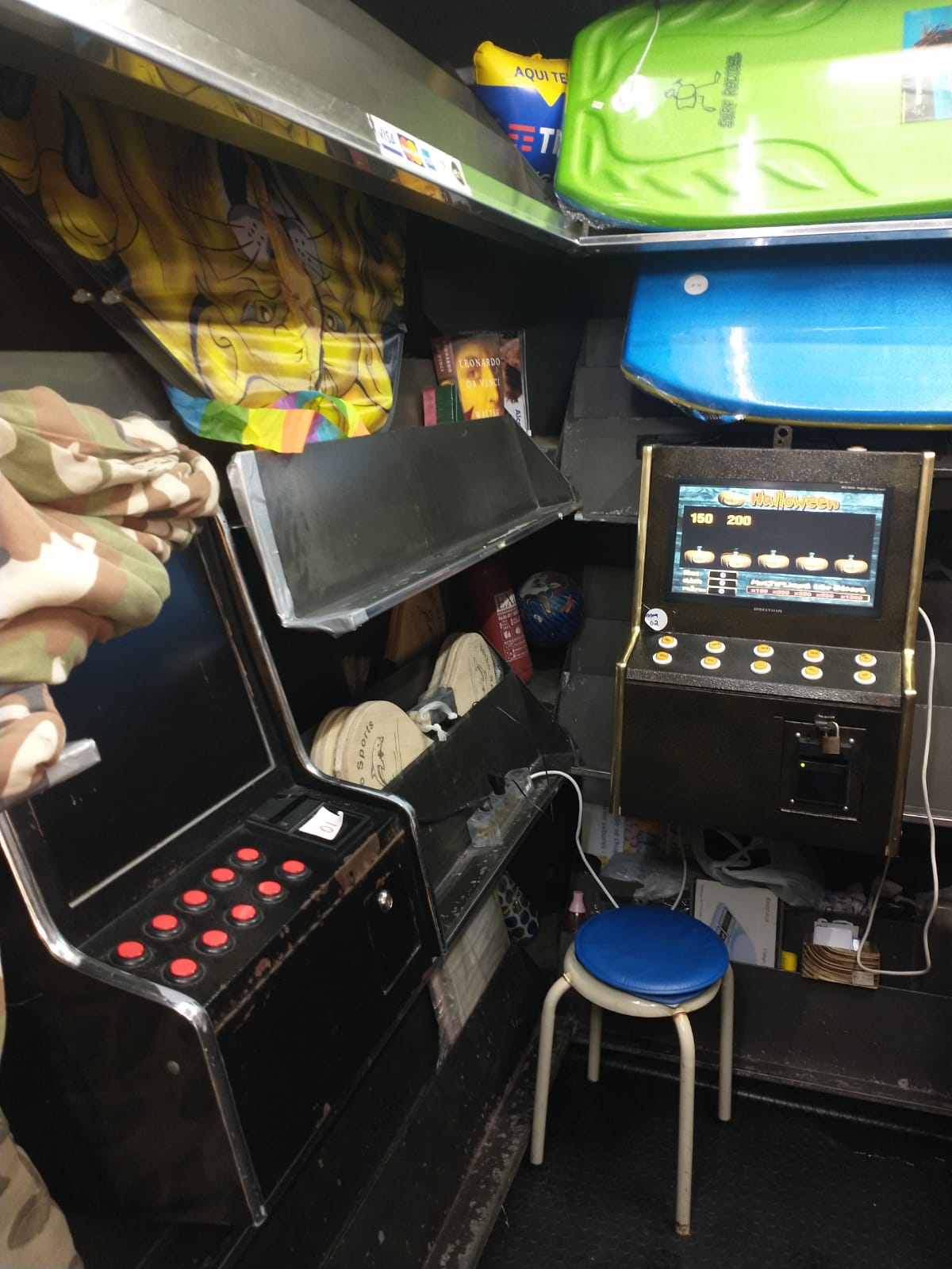Em vez de de jornais e revistas, uma banca no bairro Marapé, em Santos, tinha também máquinas caça-níqueis para jogos de azar. Os equipamentos foram apreendidos e uma mulher foi detida.