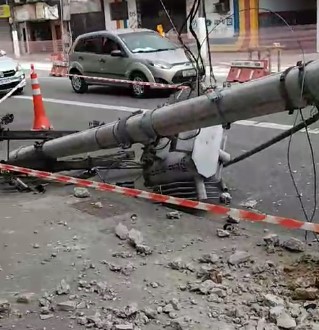 Susto no Centro de Santos nesta quinta-feira (21/09), um caminhão com um contêiner bateu e derrubou um poste na Rua Visconde de São Leopoldo. E se o trânsito no local já está difícil, em razão das obras do Veículo Leve sobre Trilhos (VLT), onde somente duas faixas estão disponíveis para o trânsito, o acidente complicou ainda mais quem seguia para a Zona Noroeste ou São Paulo. Quem vinha das ruas João Pessoa ou General Câmara precisou ter muita paciência.