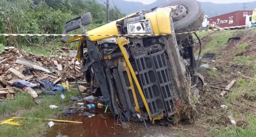 Só que no momento em que o motorista estava na frente do veículo realizando a vistoria, uma outra carreta veio, bateu na lateral e tombou no canteiro. O condutor do veículo parado foi atingido e morreu no próprio local.