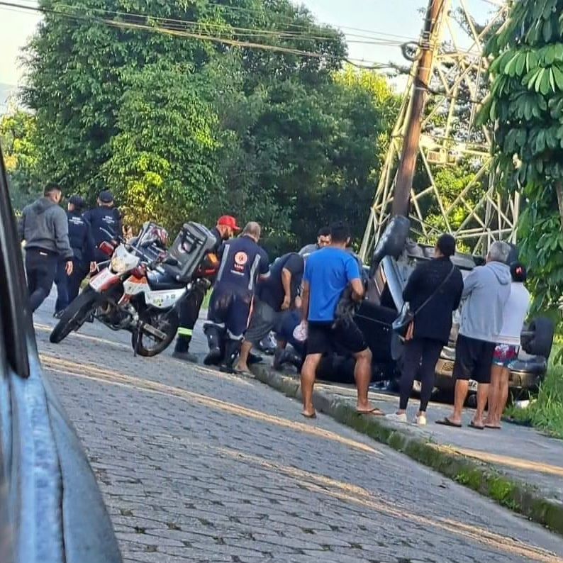 Uma motorista ficou ferida ao se envolver em um acidente de trânsito, batendo o carro contra outro veículo e capotando em seguida, em Cubatão. A colisão foi no cruzamento das ruas Martim Afonso, com a Espanha, no Jardim Casqueiro, nessa quarta-feira (21).
