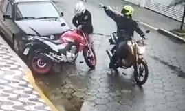 Na tarde do último domingo (19), dois homens foram vistos por uma câmera de segurança furtando uma moto em frente a um prédio. A ação aconteceu na Rua Colômbia, no bairro Guilhermina, em Praia Grande.