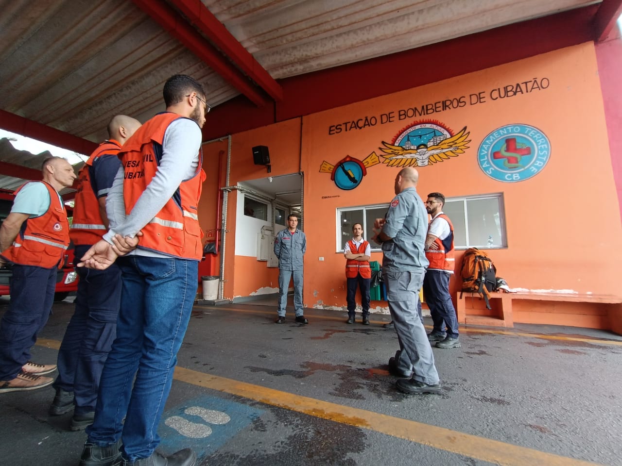 Os técnicos também foram recebidos no Posto do Corpo de Bombeiros de Cubatão, onde conheceram a Unidade Militar, bem como as atribuições e a estrutura organizacional da Corporação, reforçando a integração com a Defesa Civil cubatense.