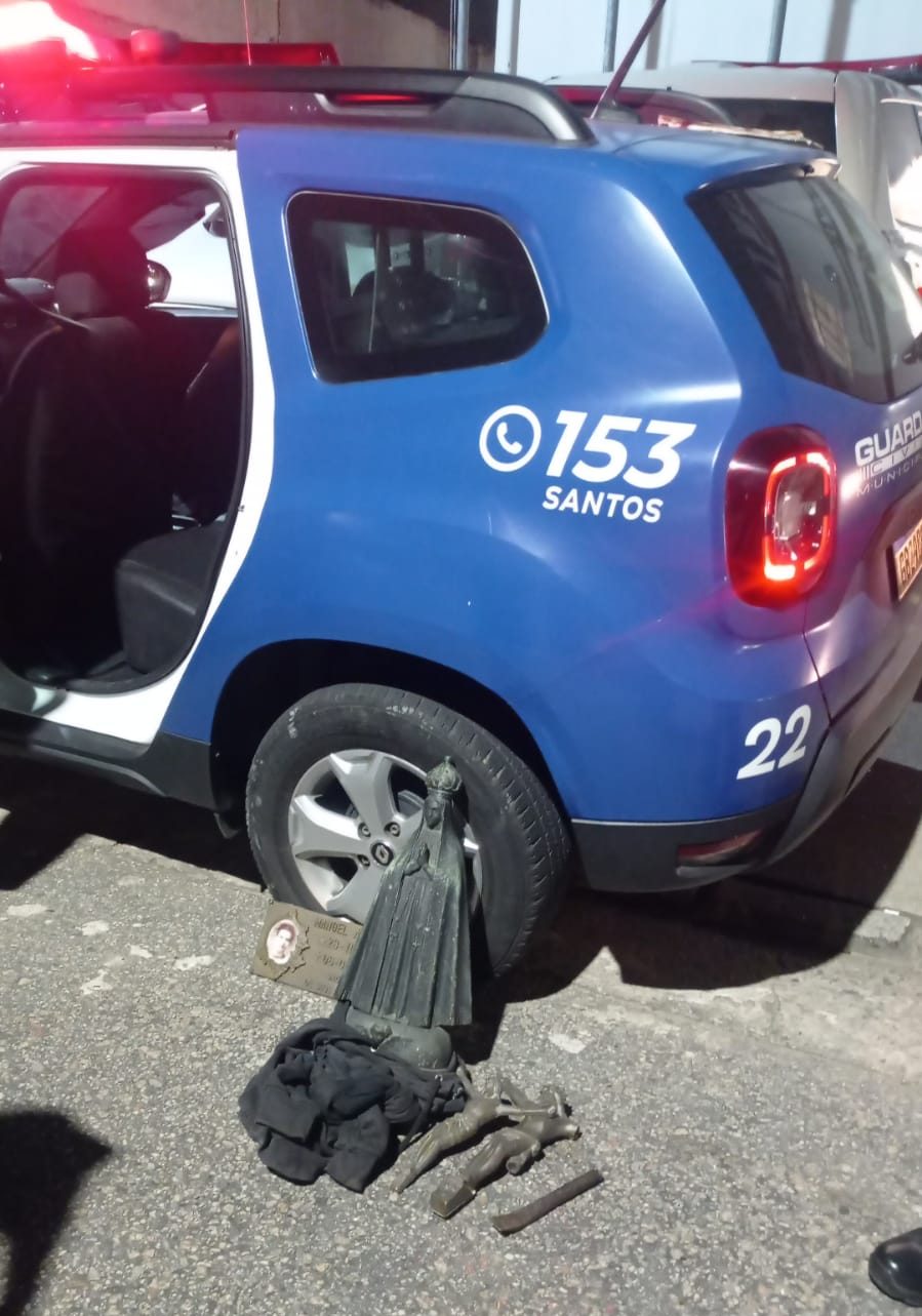 Dois homens foram presos acusados de invadirem e furtarem o Cemitério da Filosofia, no Saboó, em Santos. A Guarda Civil Municipal (GCM) conseguiu impedir que a dupla levasse as peças de jazigos.