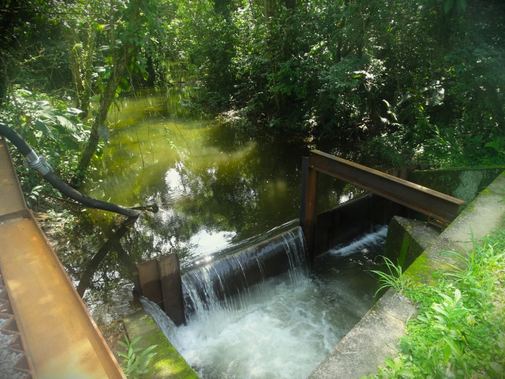 Para este trabalho, foram instalados cerca de 4,5 km de uma nova tubulação adutora, além de um sistema de bombeamento que direciona as águas do rio Trindade, localizado na área continental de Santos. Ele fará a interligação com outra adutora de maior diâmetro. Desta forma, ela leva a água bruta dos rios Jurubatuba e Jurubatuba Mirim para a estação de tratamento (ETA) que atende ao município.