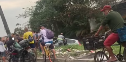 Um acidente com um carro aconteceu na Avenida Penedo, em São Vicente. O carro onde um casal de idosos estava, caiu no local e eles foram socorridos pela equipe do Serviço de Atendimento Móvel de Urgência (SAMU).