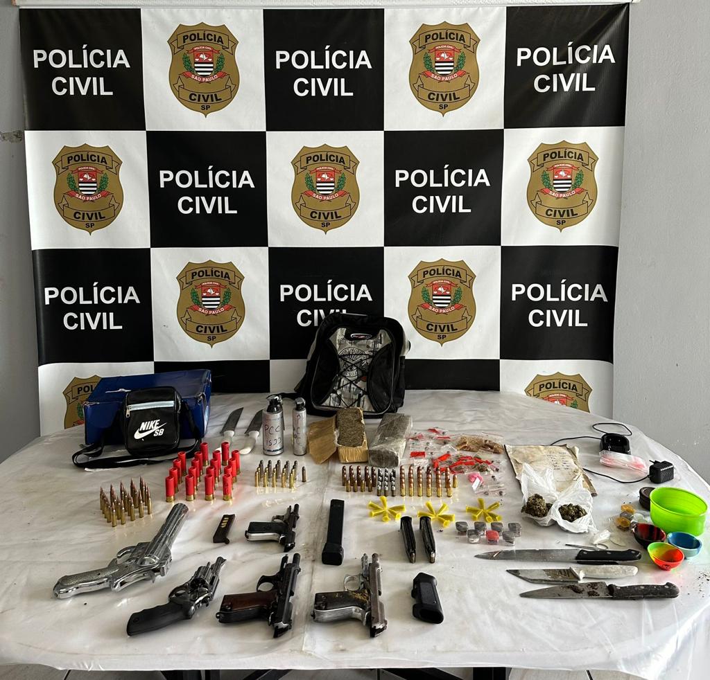 Em um imóvel na lateral do ponto de tráfico de drogas, foram apreendidas três pistolas, um revólver, um lançador de sinalizador, duas granadas, carregadores e munições. Além disso, também foram apreendidos, dois tijolos de maconha e 29 porções da mesma droga, uma porção de skunk, 50 porções de haxixe, 17 comprimidos de ecstasy entre outros objetos.