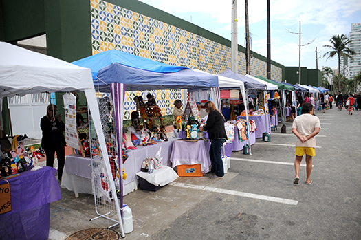 A Feira de Artesanato Itinerante acontece três vezes ao mês em diversos pontos de Praia Grande, como o Portinho e o Parque da Cidade, realizando o fomento da arte local e da economia criativa.