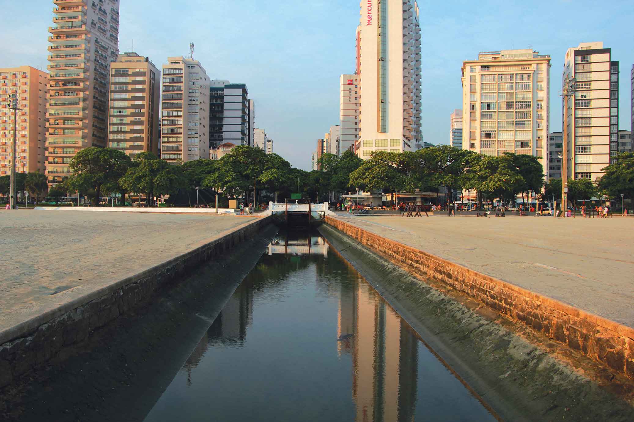 “As ecobarreiras servem para impedir o avanço dos materiais flutuantes. Mas agora estamos implantando uma nova ecobarreira, com base em plantas aquáticas. Ela vai melhorar a qualidade biológica das praias e dos canais. A experiência é pioneira e está sendo feita no Canal 05. Depois ela vai ser implantada em outros pontos e dependendo do resultado, os demais canais de Santos também vão receber a nova ecobarreira”.