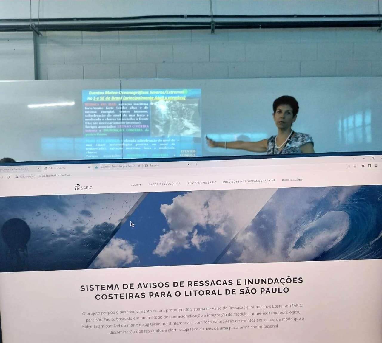 Foi realizada na Universidade Santa Cecília, em Santos, um curso de capacitação técnica para a prevenção contra ressacas e ocorrências de alagamentos. Técnicos do Departamento de Proteção e Defesa Civil de toda a Baixada Santista receberam aluas sobre o Sistema de Aviso de Ressacas e Inundações Costeiras para o Litoral de São Paulo (Saric).