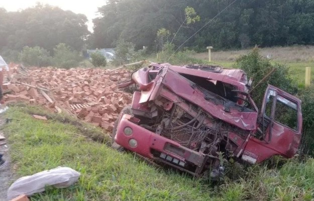 Duas viaturas e seis bombeiros foram até o local e constataram houve um acidente envolvendo um caminhão e uma caminhonete. O caminhão carregava tijolos e, devido à batida, tombou em uma área de mato da rodovia.