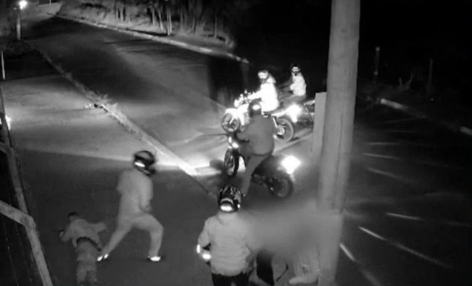 O crime foi na rua Emilia Cergatti, Jardim Morumbi em Campinas. As imagens mostram o momento em que cinco bandidos, divididos em três motos, rendem o casal que também estava numa motocicleta.