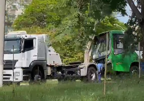 O ônibus permanece no local para realização da perícia. Segundo a Emdec a faixa esquerda está canalizada e os agentes monitoram o trânsito.