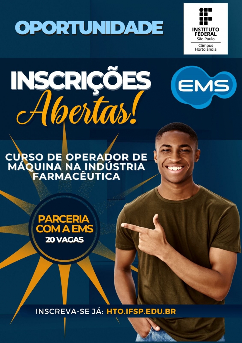 Além da especialização, esse processo seletivo também permitirá o ingresso de 20 alunos na farmaceutica EMS, sediada em Hortolândia.