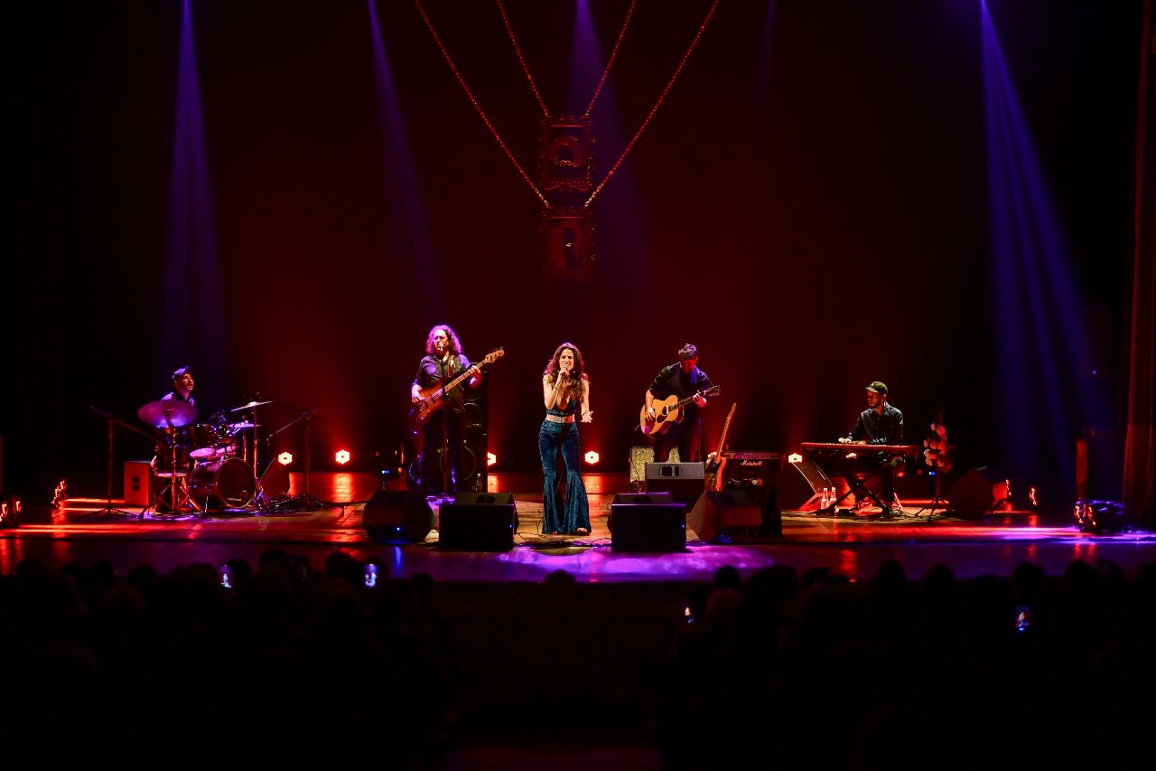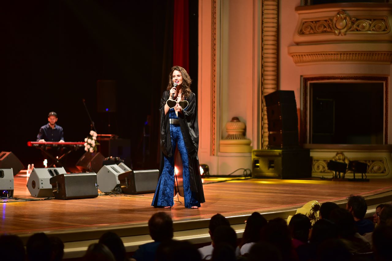A cantora Ana Cañas apresentou-se na noite desta quarta-feira (5), no Theatro Pedro II, com espetáculo homenageando o cantor e compositor cearense Belchior, numa promoção da Rádio Nova Brasil, do Grupo Thathi de Comunicação, denominada Nova no Teatro.