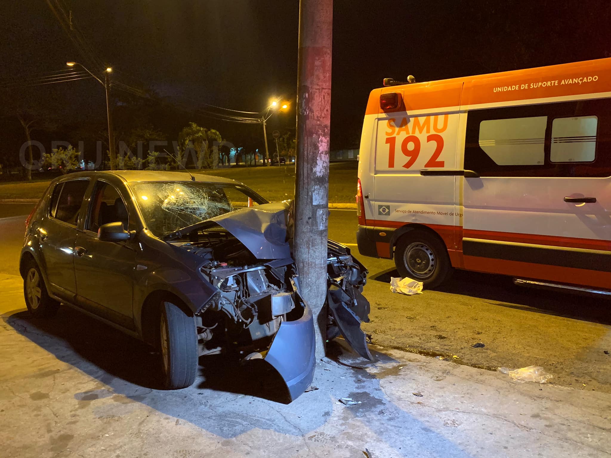 Duas pessoas ficaram feridas, na noite desta segunda-feira (14), após colisão envolvendo poste na avenida Costa e Silva, em Ribeirão Preto.