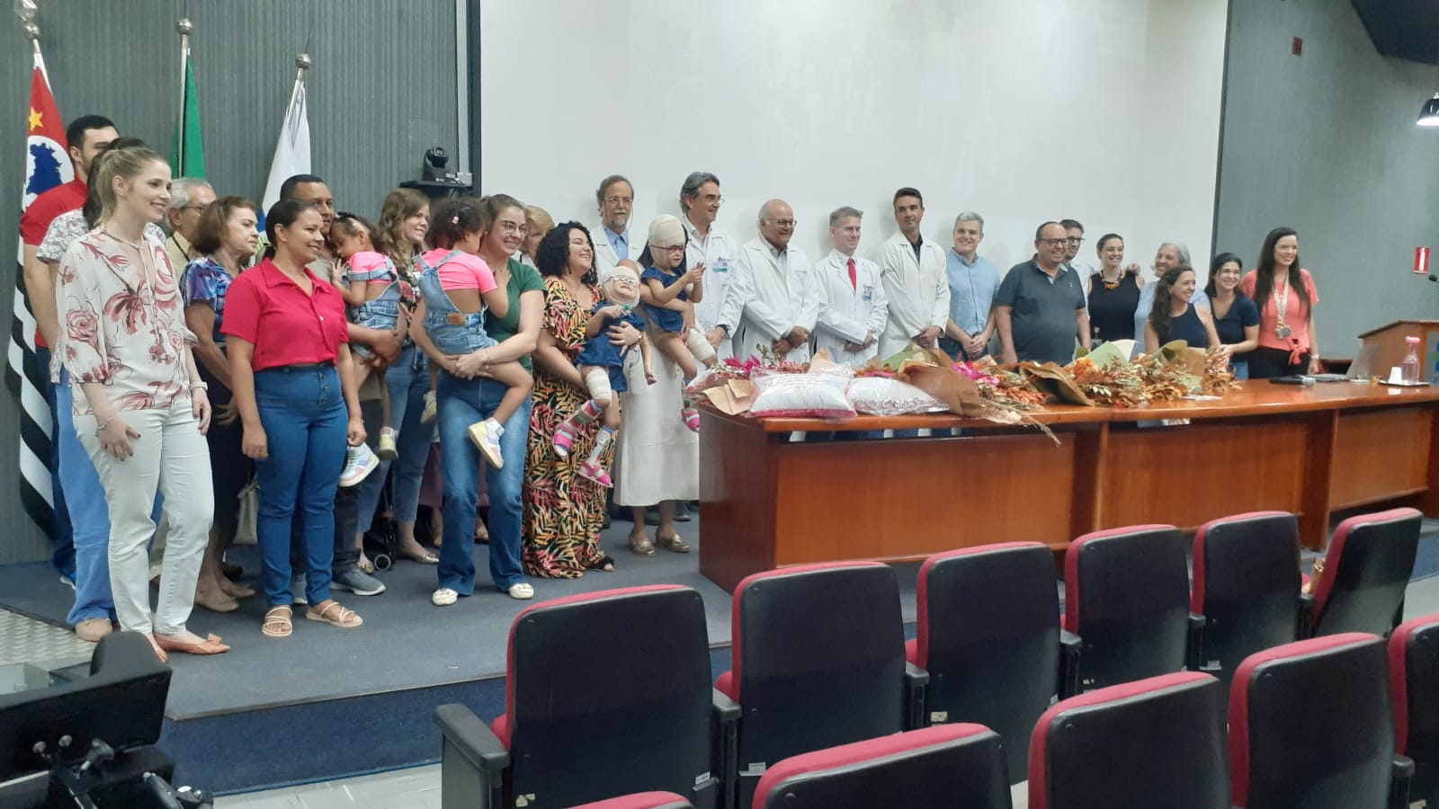 Hoje é um dia de muita comemoração para as equipes do Hospital das Clínicas da Faculdade de Medicina de Ribeirão Preto (HCFMRP-USP) e do HC Criança. Uma cerimônia uniu a direção do Hospital, médicos, enfermeiros e diversos profissionais das equipes multidisciplinares que acompanharam os dois casos de separação de gêmeas unidas pela cabeça. Participaram profissionais que atuaram nas cirurgias, das internações e da reabilitação. Também estiveram presentes médicos e pesquisadores da Faculdade de Medicina de Ribeirão Preto (FMRP-USP) e do Hemocentro.