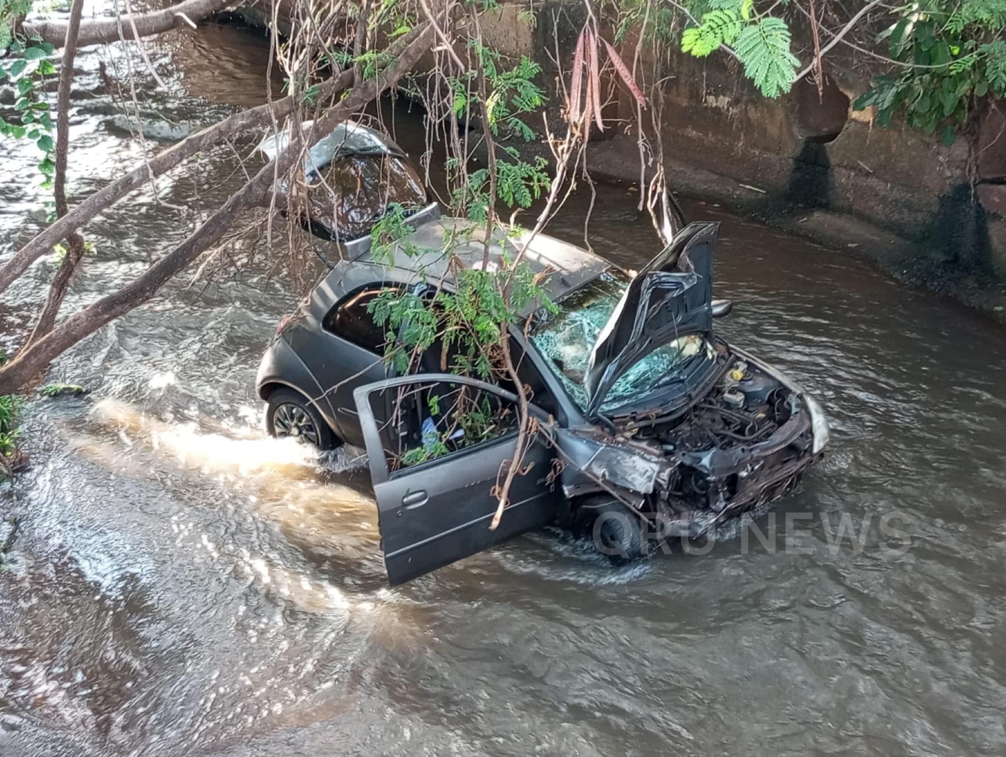 Após perder o controle da direção do veículo, um motorista, cuja identidade não foi informada até o momento, caiu em córrego da rua Elpídio Gomes e abandonou o veículo, em Ribeirão Preto.