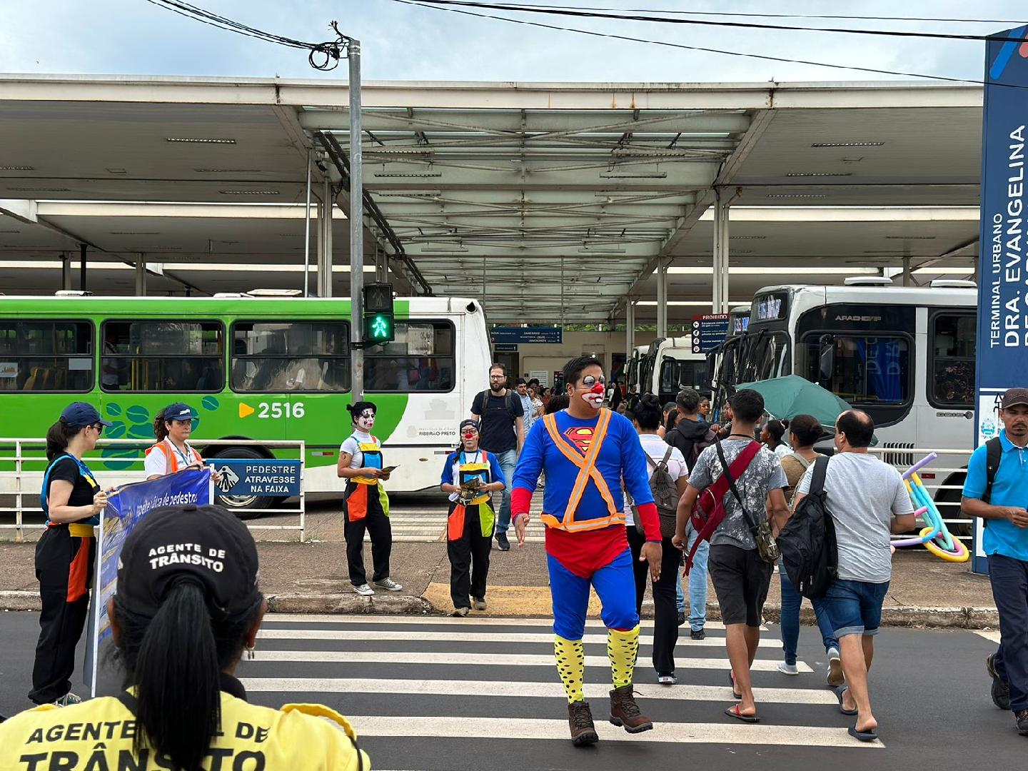 A atividade contou com interações, orientações e panfletagens com grupo pedagógico do departamento de Educação de Trânsito da Transerp.