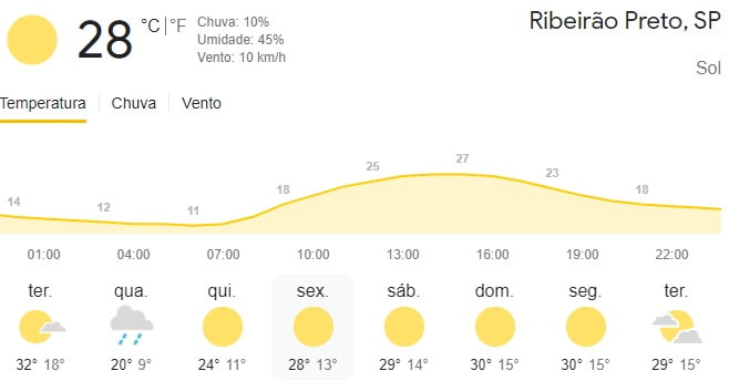 Apesar do predomínio de sol entre poucas nuvens, as temperaturas em Ribeirão Preto devem cair acentuadamente no decorrer da semana. A tendência será observada em todo o Estado de São Paulo e, em Ribeirão, a mínima nesta quarta-feira (4) podem chegar a 9 ºC, de acordo com o Climatempo.