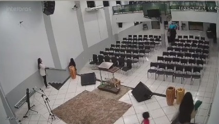Câmeras de segurança flagraram a ação. O homem chegou em um carro em alta velocidade e correu em direção à igreja para invadi-la após o culto.