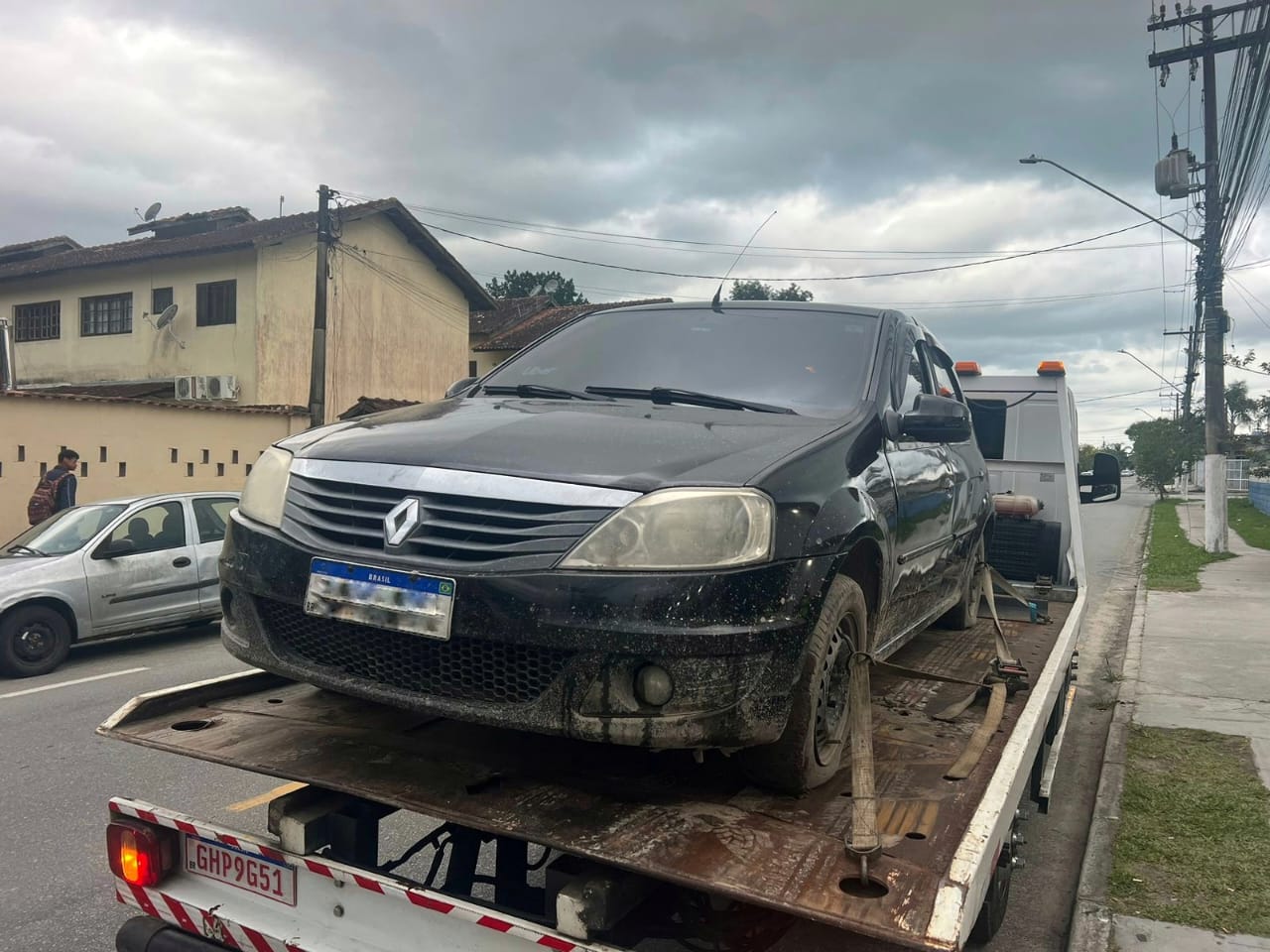 Os agentes saíram as buscas e encontraram o carro Renault Logan de cor preta ano 2011, parado e obstruindo as obras de pavimentação da Rua Aprovada 600, no bairro Chácaras. Os serviços foram retomados após a retirada do carro.