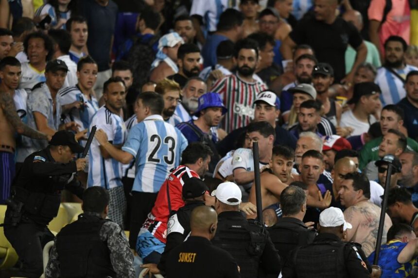 Como se fosse possível esconder o óbvio: torcedores do Brasil e da Argentina não estavam separados por nenhuma divisória no setor Sul do Maracanã- local do tumulto. Isso dias depois de uma batalha, na praia de Copacabana, protagonizada por torcedores argentinos e brasileiros – na véspera da decisão da Taça Libertadores entre Fluminense e Boca Júnior.