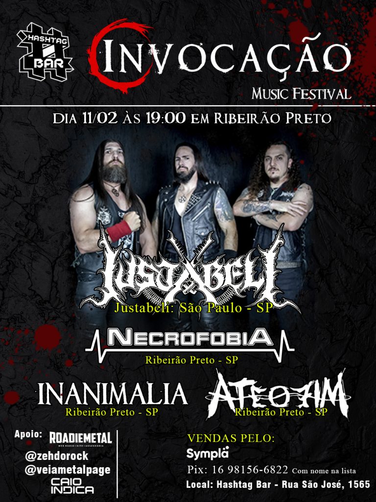 O Invocação Music Festival terá o seguinte cronograma: 21:00 Até o Fim – Banda de Metalcore de Ribeirão Preto. 22:00 Necrofobia – Banda de Thrash Metal de Ribeirão Preto. 23:00 Inanimalia – Banda de Melodic Death Metal de Ribeirão Preto, que trabalha misturas de vocais limpos com guturais. 00:00 Justabeli – Banda de Black Metal de São Paulo.