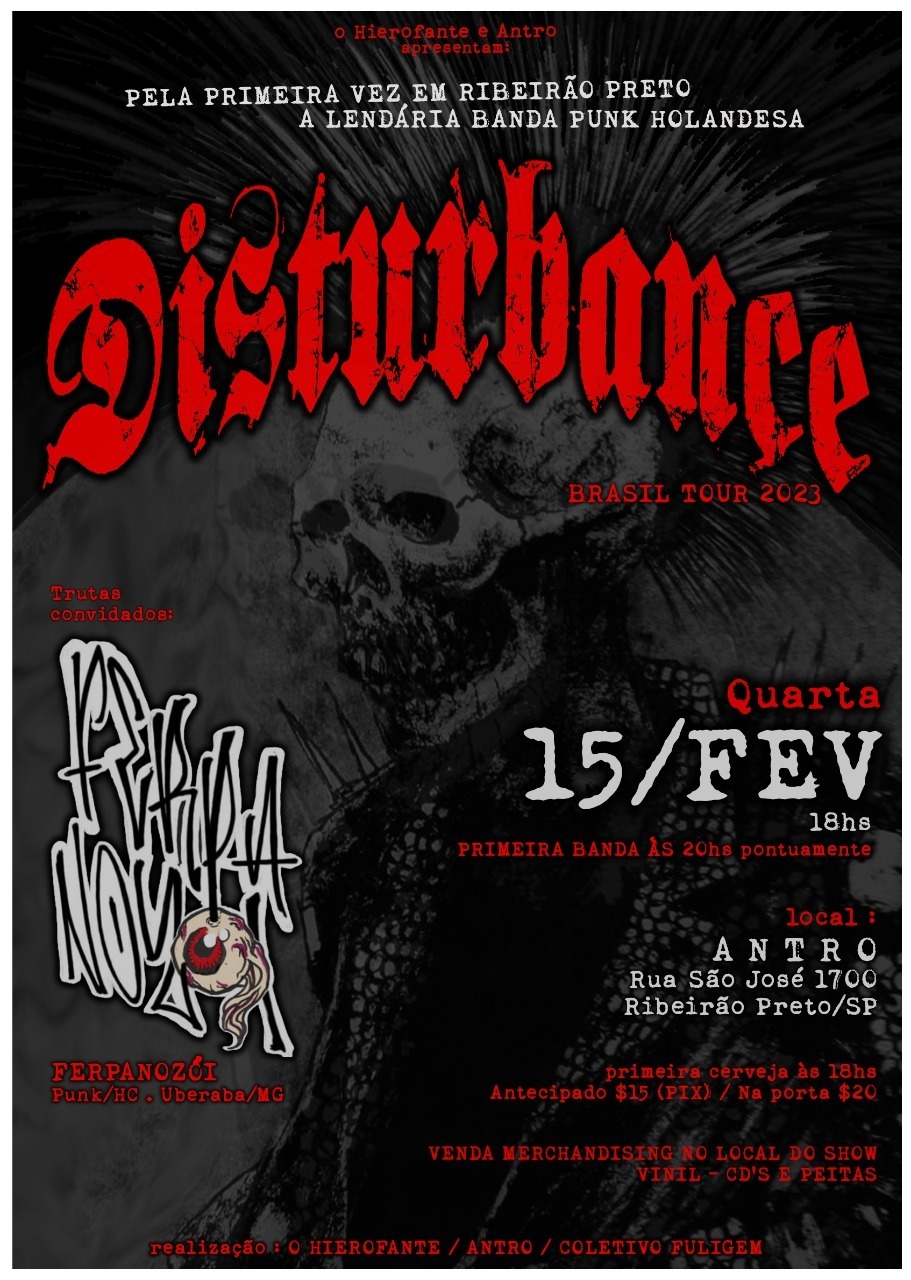 A lendária banda punk de Roterdam/Holanda, Disturbance, tem mais de 20 anos de historia e é uma das referências da atual cena europeia, com participação em diversos festivais no continente, Ásia e África.